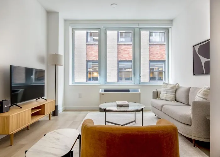 Das 65 m² große Fidi 1Br W Gym Doorman Wd Nr Wall St Nyc-983 liegt circa 5 Minuten zu Fuß von der U-Bahn-Station Broad St entfernt und bietet WLAN für geschäftliche oder private Zwecke. Angelika Film Center lässt sich von diesem Apartment aus in ca. 5 Fahrminuten erreichen.